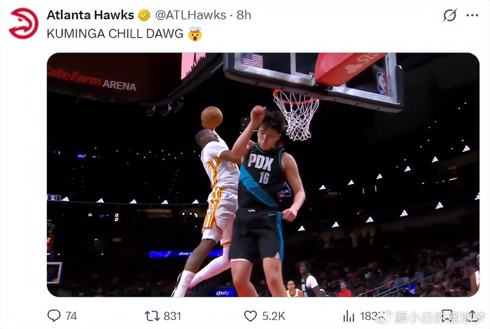 除此之外库明加在篮下旱地拔葱直接隔扣了2.18米的杨瀚森,库明加这个运动天赋简直令人叹为观止,他在勇士队的功勋篮球体系下得不到发挥,在勇士四年都是边缘人的存在。
